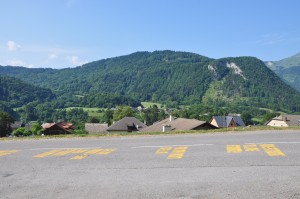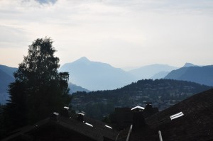 I rode the TGV from Paris direct to the Alps; the TGV is the coolest thing ever.  Hands down beats flying places.  Pete and I met up in Les Cluses (The Ravines), and stayed in a little hotel in Les Carroz d’Arâches. All the hotels in the region are up in the mountains to attract the skiers in the winter, and ours was no exception at 1200m.  We had a nice view of the local Cols from our window: