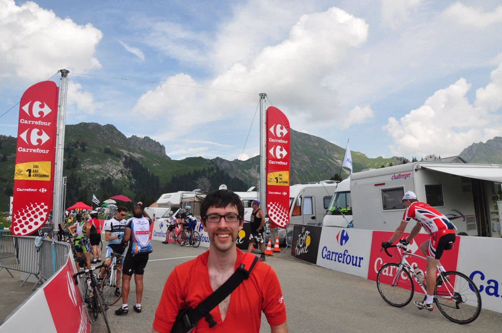 The riders all flew past, even the “slow” guys, and within a few minutes they had all gone past.  As the riders made their way to the finish in Morzine, we (and the tens of thousands of other people) made our way back to Taninges, and then to Les Cluses.  All in all, Pete and I covered just over 70 km, with two kilometers of vertical ascent.  We even managed to catch most of the World Cup final over pasta in Carroz.